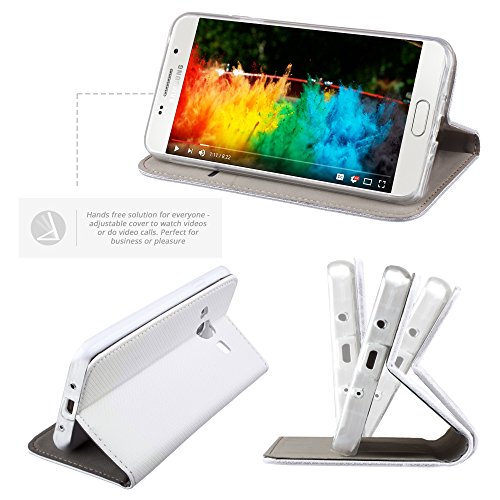Moozy Cover Custodia a Libro per Samsung J3 2016, Bianco - Flip Smart Magnetica con Funzione di Appoggio