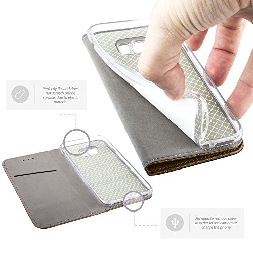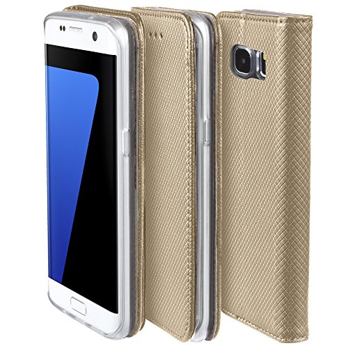 Moozy Cover Custodia a Libro per Samsung S6 Edge, Oro - Flip Smart Magnetica con Funzione di Appoggio