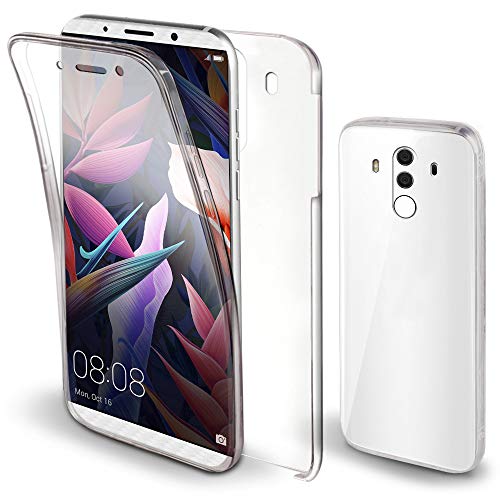 Moozy Cover 360 Gradi per Huawei Mate 10 PRO Trasparente - Full Body Case Custodia Copertura Completa - Anteriore in Silicone e Posteriore Rigida
