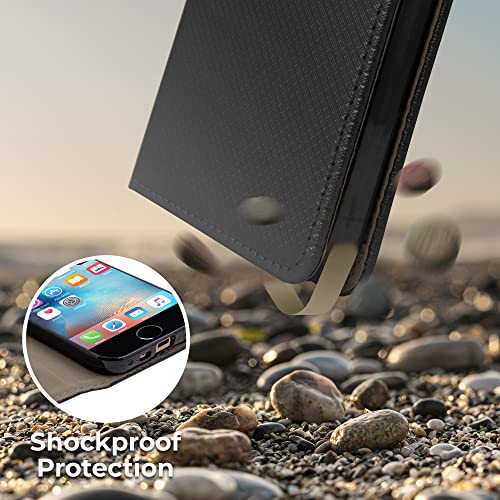 Moozy Cover per iPhone SE, iPhone 5s, Nero - Custodia a Libro Flip Smart Magnetica con Appoggio e Porta Carte