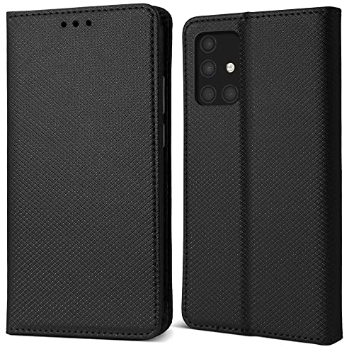 Moozy Cover per Samsung A71, Nero - Custodia a Libro Flip Smart Magnetica con Appoggio e Porta Carte