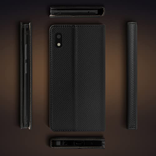 Moozy Cover per Samsung A10, Nero - Custodia a Libro Flip Smart Magnetica con Appoggio e Porta Carte