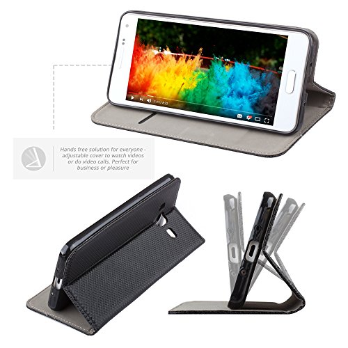 Moozy Cover per Samsung J3 2016, Nero - Custodia a Libro Flip Smart Magnetica con Appoggio e Porta Carte
