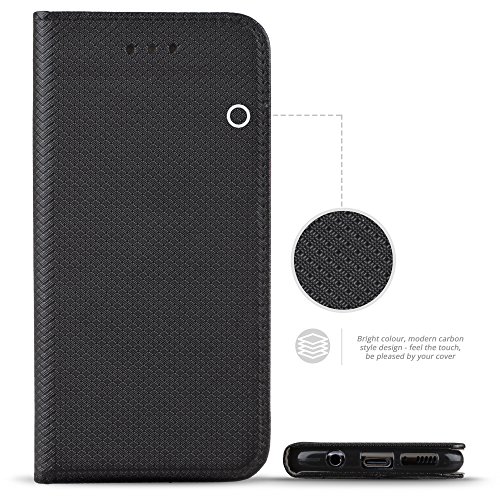 Moozy Cover per Samsung S8, Nero - Custodia a Libro Flip Smart Magnetica con Appoggio e Porta Carte