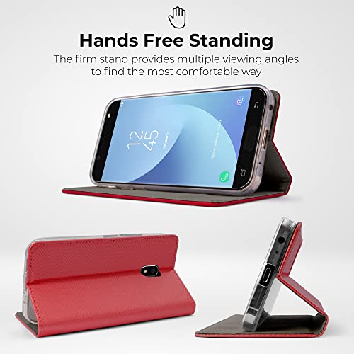 Moozy Cover per Samsung J3 2017, Rosso - Custodia a Libro Flip Smart Magnetica con Appoggio e Porta Carte