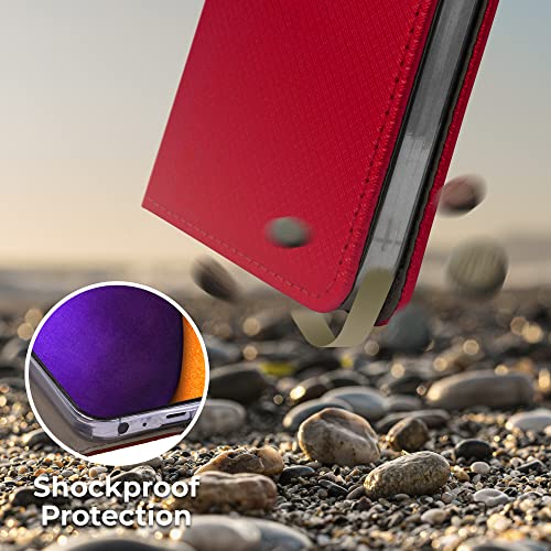 Moozy Cover per Samsung A52s 5G e Samsung A52, Rosso - Custodia a Libro Flip Smart Magnetica con Appoggio e Porta Carte