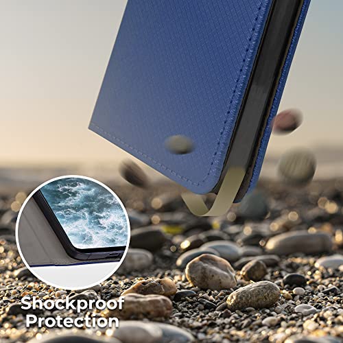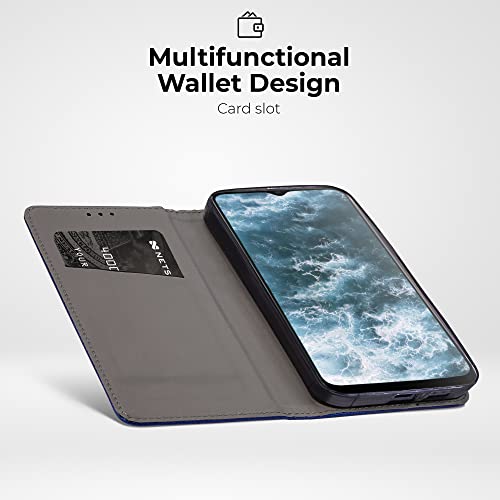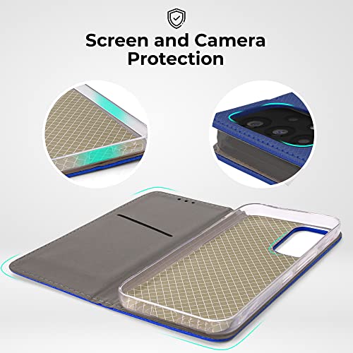 Moozy Cover per Samsung A33 5G, Blu scuro - Custodia a Libro Cover Flip Case Smart Magnetica Portafoglio con Appoggio e Porta Carte