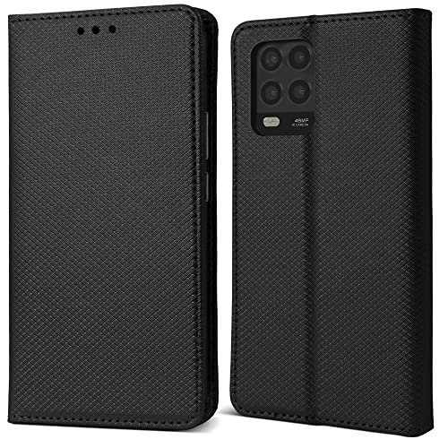 Moozy Cover per Xiaomi Mi 10 Lite 5G, Nero - Custodia a Libro Flip Smart Magnetica con Appoggio e Porta Carte