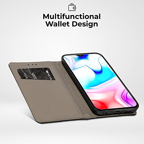 Moozy Cover per Xiaomi Redmi 8, Nero - Custodia a Libro Flip Smart Magnetica con Appoggio e Porta Carte