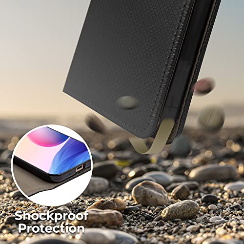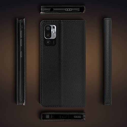 Moozy Cover per Xiaomi Redmi Note 10 5G e Poco M3 Pro 5G, Nero - Custodia a Libro Cover Flip Case Smart Magnetica Portafoglio con Appoggio e Porta Carte