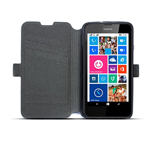 Moozy Custodia a Libro Sottile Flip per Nokia 630/635 Lumia - Brillare Effetto con Funzione di Appoggio e Supporto in Silicone, Nero