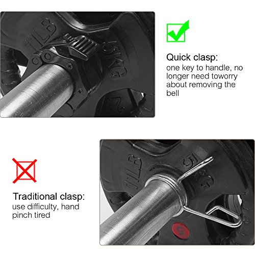 Design innovativo: il design con chiusura a scatto, indotta da una molla, mantiene i pesi in sicurezza, rende sicuro l'allenamento, perché i dischi del bilanciere sono fissati saldamente e in modo sicuro.