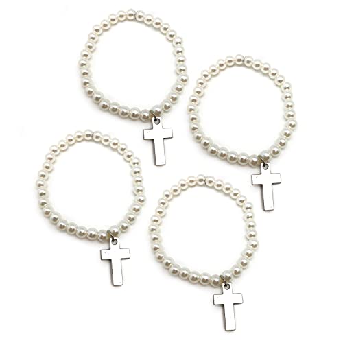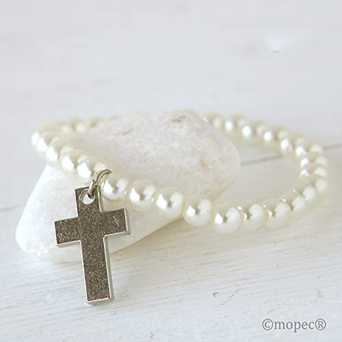 Mopec - Bracciale con perline e croce. Confezione da 4 perle, 17 cm