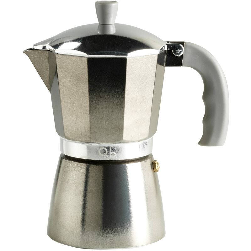 Fluo di Q.b. by Mopita, caffettiera in alluminio, 6 tazze, manico antiscottatura, color silver. Colora la tua cucina con le caffettiere della linea Fluo di Q.b. by Mopita. In alluminio, color gold, e guarnizione in silicone. Fondo adatto a tutti i piani cottura, eccetto quelli a induzione. Disponibile da 1, 3 e 6 tazze.