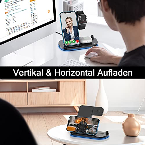 MOPURS Caricatore Wireless,4 in 1 Wireless Charger compatibile con iPhone 13 12 11 Pro MAX XR X 8 Plus,supporto di ricarica wireless per Apple Watch Series SE/7/6/5/4/3/2,AirPods Pro e Apple Pencil