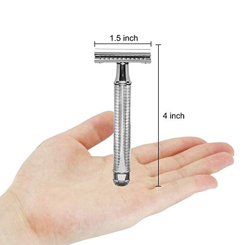 Materiali e adatto per: questo doppio rasoio bordo safty in metallo con metallo cromato highlights.perfect capodanno o regalo di compleanno per tuo padre, figlio, amici e innamorati.