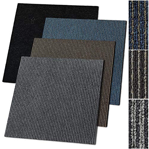 Moquette Pavimento al Metro - Tappeto su Misura Componibile, Mattonelle in Tessuto Autoposanti, (5.5 mm), in 4 Design Bicolore a Contrasto - SET da 24 (6 m²) - 50x50 cm - Antracite - Grigio