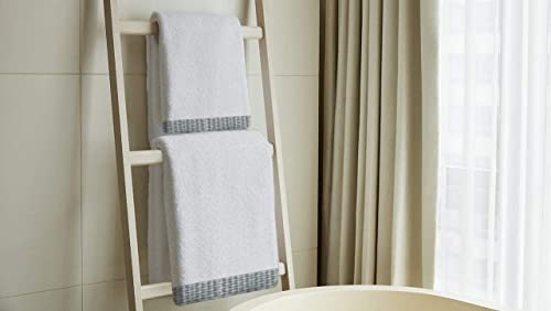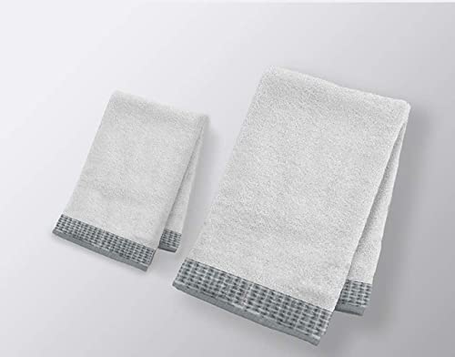 LARA MORADA Set 1+1 Asciugamani in Spugna con Balza in Jacquard Numero 1 Asciugamano Viso + Numero 1 Asciugamano OSPITE in Morbida Spugna IDROFILA di Cotone 100% (Lanvin Bianco)