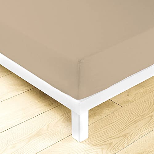 LARA MORADA Lenzuola sotto con Angoli Tinta Unita 100% Cotone (Beige, Singolo 1P)