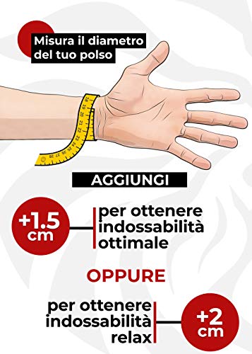 5️⃣ 5 MISURE DISPONIBILI. Adesso puoi scegliere con tranquillità la misura ideale per te. Misura il diametro del tuo polso e aggiungi 1.5 cm per ottenere indossabilità ottimale, oppure 2 cm per l'indossabilità relax. In più Il Braccialetto è regolabile di un centimetro usando l'elemento aggiuntivo di allungamento incluso.