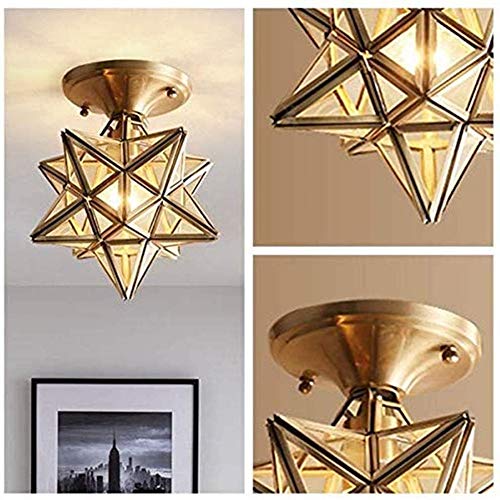 E27 Moravian Star Island Hanging Pendant Light Passage Lampada Da Soffitto Lampadario In Ottone Spazzolato Pentagram Glass Chandelier Per Sala Da Pranzo,Soggiorno,Camera,Ristorante-Oro e bronzo con ve