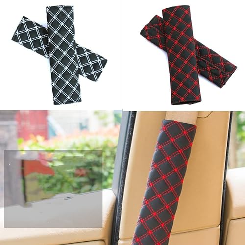 Morbida fodera per cintura di sicurezza per auto, 2 imbottiture per imbracatura, copri cintura di sicurezza universale per auto Cuscino per spalla per bambini e adulti (Rosso Nero)