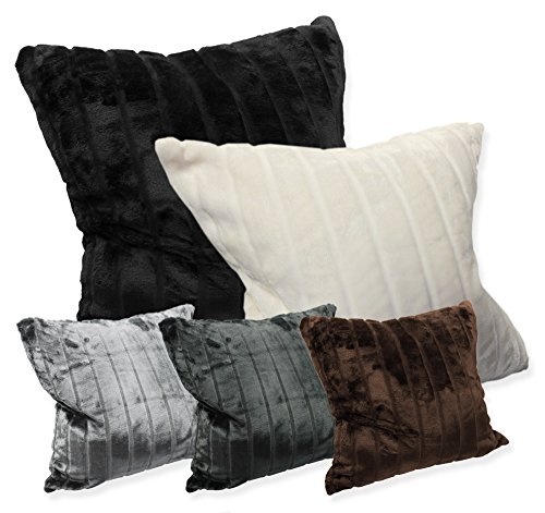 Morbida fodera decorativa per cuscini, soffice come il cashmere, realizzata in tessuto simile alla pelliccia di visone, a strisce, Poliestere, marrone, 60 x 60 cm