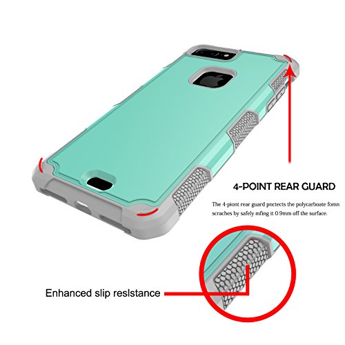 Morbido della custodia per iPhone 8/iPhone 7 Hightec TPU + PC Cover Slim flessibile paraurti antiurto Full Body silicone telaio plastica dura copertura protettiva Shell leggero di pelle sottile schermo Full Body sacchetto nero per iPhone 7/iPhone 8 (11,9 cm), Gray+Green, iPhone 8 Plus/7 Plus