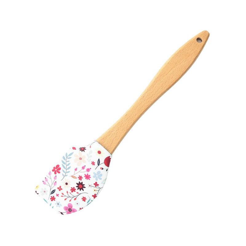 Caratteristiche: 1. Materiali accuratamente selezionati: manico in silicone + faggio, silicone morbido, disponibile ad alta e bassa temperatura, Non facile da rompere, facile da pulire2. design radian a doppia faccia: adatto a tutti i tipi di pentole e padelle. Design ad angolo retto, adatto al contenitore con Parete dritta;