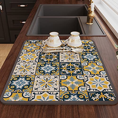 Morbuy Tappetino Scolapiatti Assorbente, Stile Vintage Tappetino per Asciugare i Piatti Asciugatura Rapida/Tappetini Bancone Cucina Antiscivolo per Macchine da Caffè e Tavoli (Giallo,30x40cm)