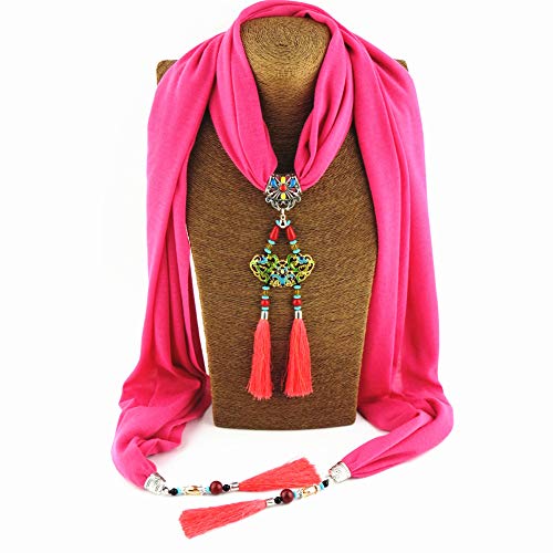 MoreChioce Collana da donna sciarpa,Sciarpa con ciondolo in stile nazionale con ciondolo a forma di sciarpa con strass e perle, anello da donna, sciarpa invernale con nappa