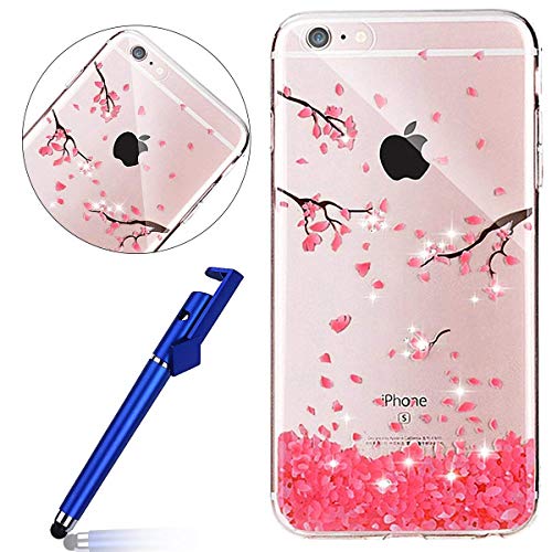 MoreChioce Compatibile con Cover 8 Plus/7 Plus Custodia Silicone,Fiore Animal Painting Colorato 3D Silicone Morbido Antiurto Cover- Fiori di ciliegio,Strass Diamante Fiore