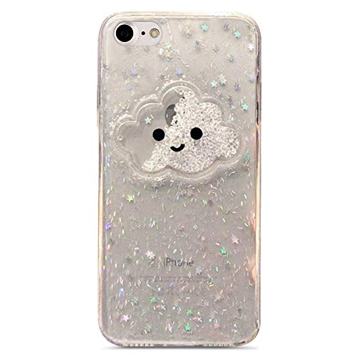 MoreChioce Compatibile con Coveriphone7/8 TPU Custodia Silicone,3D Cristallo Chiaro Trasparente TPU Silicone Case Morbida AntiGraffio TPU Silicone Case Compatibile coniphone7/8,Nube/Glitter