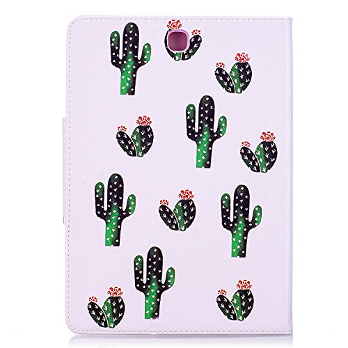 MoreChioce Compatibile con Custodia Galaxy Tab A 9.7/SM-T550 Cover a Libro, Colorate PU Pelle Wallet Case Custodia del Tavoletta,Portafoglio Morbido Antiurto Cover, Cactus