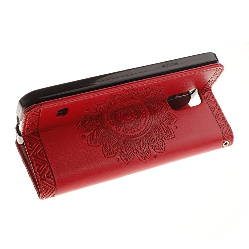 MoreChioce Compatibile con Custodia Galaxy S5 Portafoglio Cover a Libro, Rigida Flip PU Pelle Cover(Fibbia Reverse Modello Mandala Relief Custodia Compatibile con Galaxy S5 i9600,Rosso