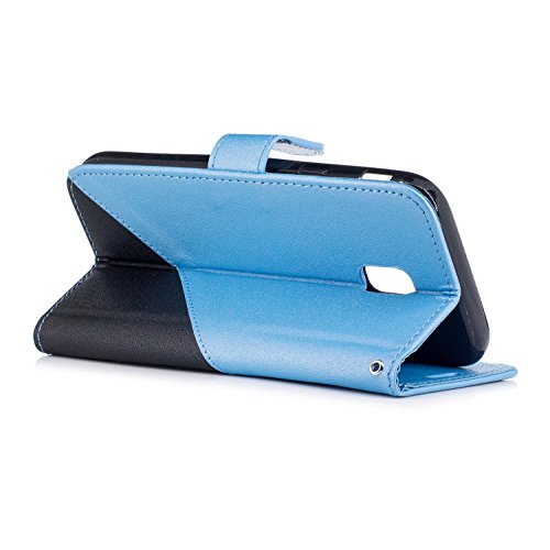 MoreChioce compatibile con Custodia Galaxy J3 2017(Versione Europea)/Galaxy J330 Cover a Libro,Flip PU Pelle Cover Modello Macchia Doppio Colore Cuciture Portafoglio Cover Splicing Colore-Nero Azzurro