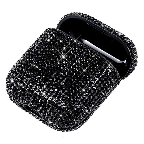 MoreChioce Compatibile con Custodiaairpod1,Brillantini Glitters Rhinestone Strass Custodia Protettiva in PCairpod1,Leggero Impermeabile Antipolvere Custodia,Nero#1