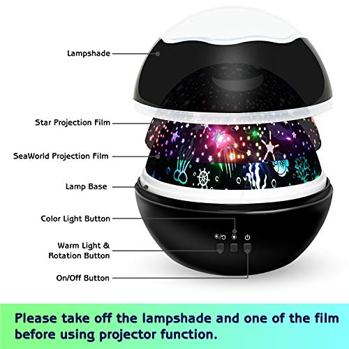 Regalo per i bambini - Come lampada proiettore bambini, sono progettato per i bambini per avvicinarli alla stella e alla luna, il mondo del mare al momento di coricarsi, che possono portarli in un ambiente di sonno caldo e tranquillo, ti aiuta anche a liberare il tuo corpo e la tua mente.