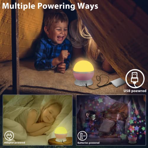 Moredig - Lampada Proiettore Stelle Bambini, Proiettore Stelle Soffitto, Luce Notturna Bambini con 8 Colori Luci & 360° Rotazione, Luce Notte per Bambini, Neonati, Compleanno, Natale, Vivai - Rosa