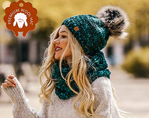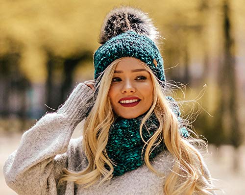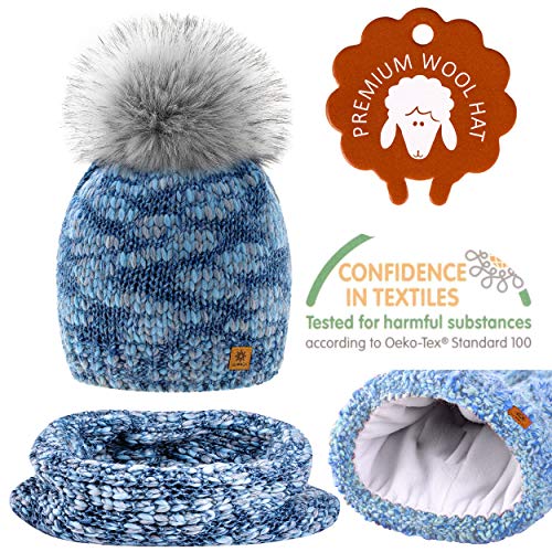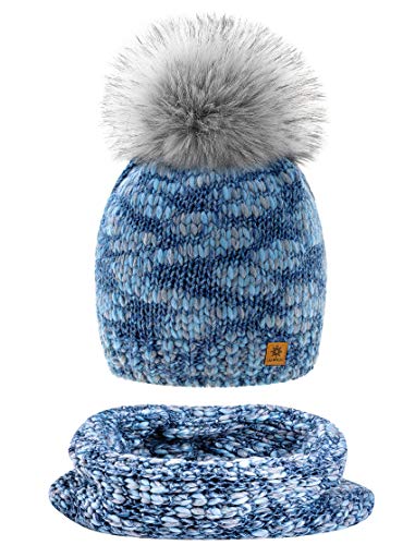 MFAZ Morefaz Ltd Set Cappello & Sciarpa Beanie Donne Cappelli Invernale Lana Alpaca Collo a Maglia in Pile Cappello Pom Pom (Arctic Blue Set Sciarpa e Cappello)