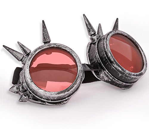 MFAZ Morefaz Ltd Welding Cyber Goggles Steampunk Goth Cosplay 50s Occhiali da Sole Sunglasses (Grey Spikes)