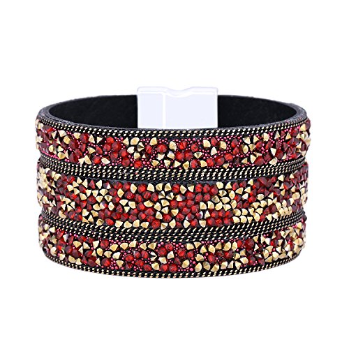 Morella Bracciale Donna Largo Decorato con zirconi e Strass e con Chiusura Magnetica Color Oro e Rosso