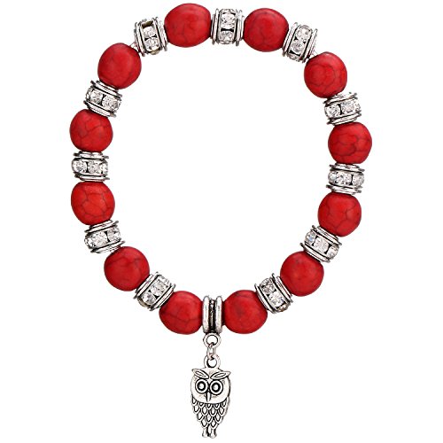 Morella Bracciale Donna con Perle e Ciondolo Gufo e zirconi Elastico Rosso