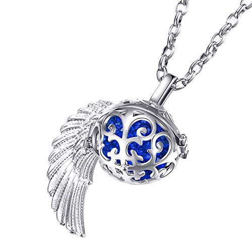 Morella Catenina Donna Angelo Custode in Acciaio Inox 70 cm con Ciondolo ad Ali di Angelo e Sfera zirconi Blu Ø 16 mm in Sacchetto di Velluto