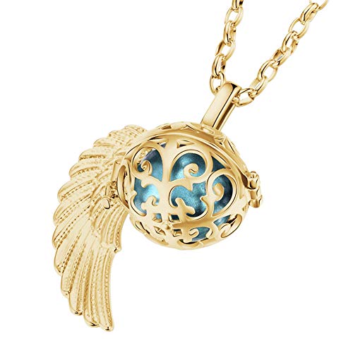 Morella Collana Catenina donna angelo custode in acciaio inox oro 70 cm con ciondolo ad ali di angelo e sfera zirconi 16 mm in sacchetto di velluto