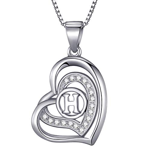 Morella Collana Donna a Forma di Cuore Lettera H con zirconi Bianchi 46 cm Argento 925 rodiato
