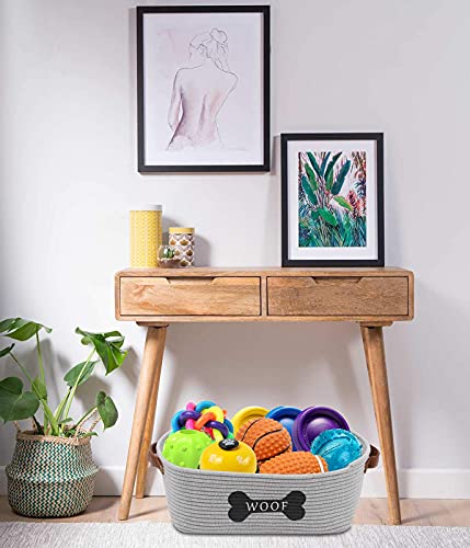 Morezi Cestino per giocattoli per cani in cotone resistente contenitore per giocattoli per cani perfetto per trasportare giocattoli per cuccioli di piccola taglia coperte giocattoli da masticare -grigio
