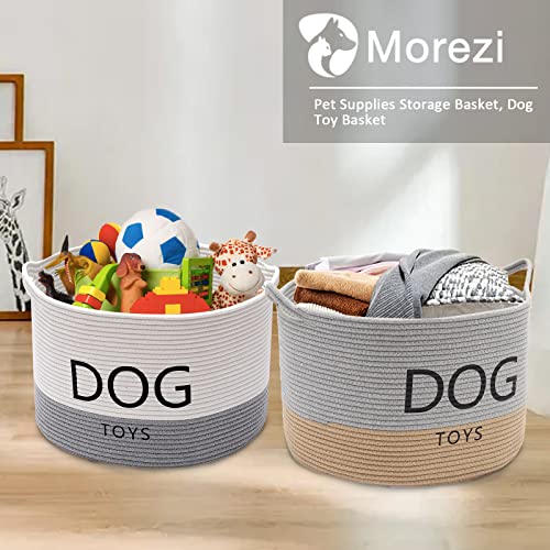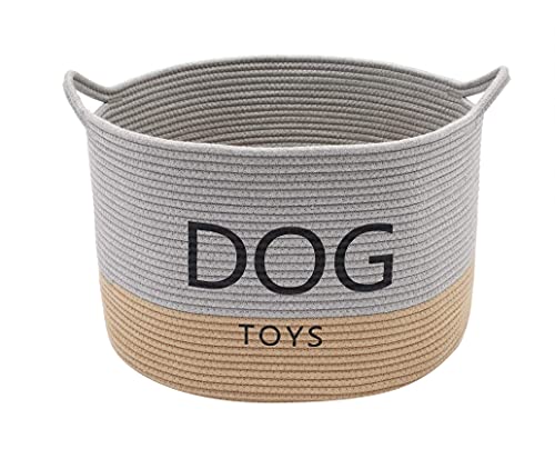 Morezi - Cestino rotondo per cani in corda resistente, con manico, grande cestino per cani, perfetto per organizzare giocattoli, coperte, guinzagli - grigio kaki