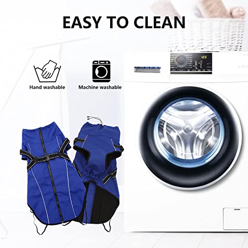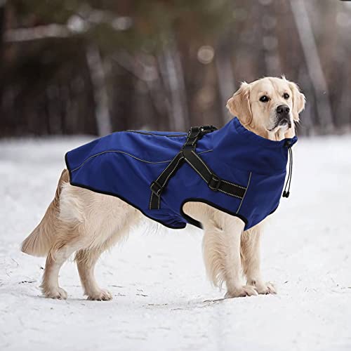 MOREZI Giacca per cani a collo alto con strato esterno antivento e impermeabile,fodera in pile,strisce e cinghie riflettenti,adatta a cani di taglia media e grande-Blu-XL