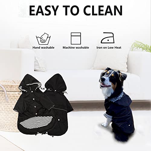 MOREZI Impermeabile per cani con zip e bottoni riflettenti, resistente alla pioggia/all'acqua,coulisse regolabile, cappuccio rimovibile,elegante impermeabile per cani-Nero-L